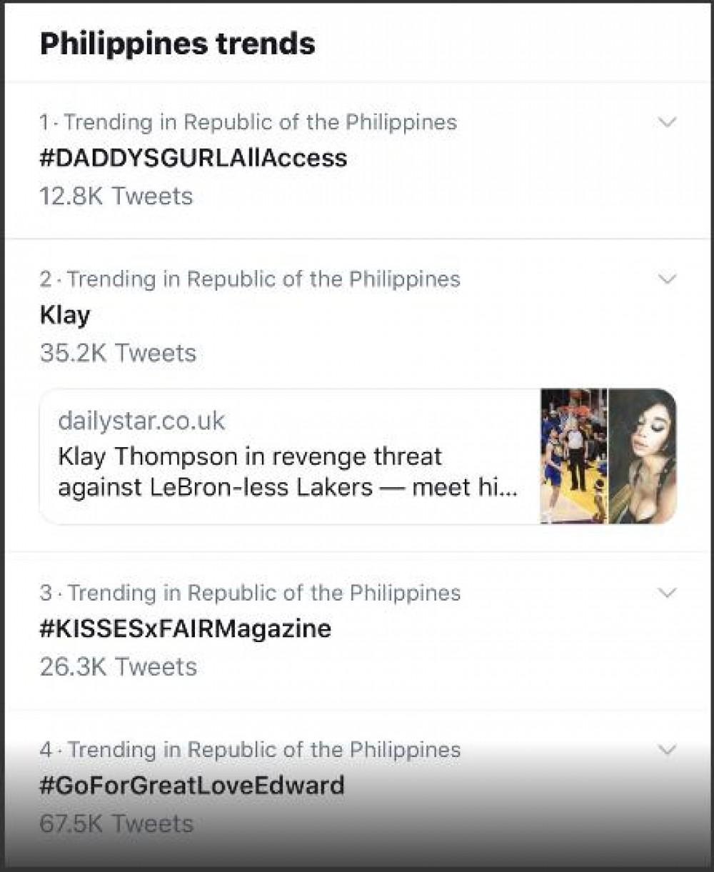 Sa katunayan nasa top trending topic ang #DADDYSGURLAllAccess sa Twitter Philippines.
