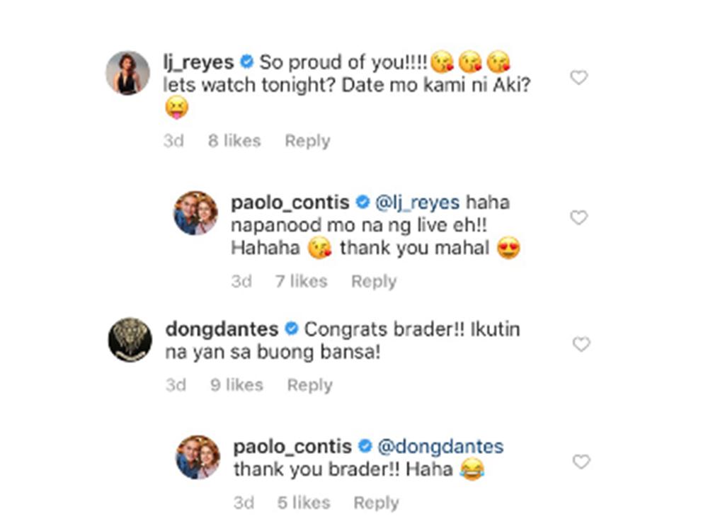 Ilan lamang sa celebrities na nag-react sa performance ni Paolo Contis ay ang girlfriend niyang si LJ Reyes at si Kapuso Primetime King Dingdong Dantes.