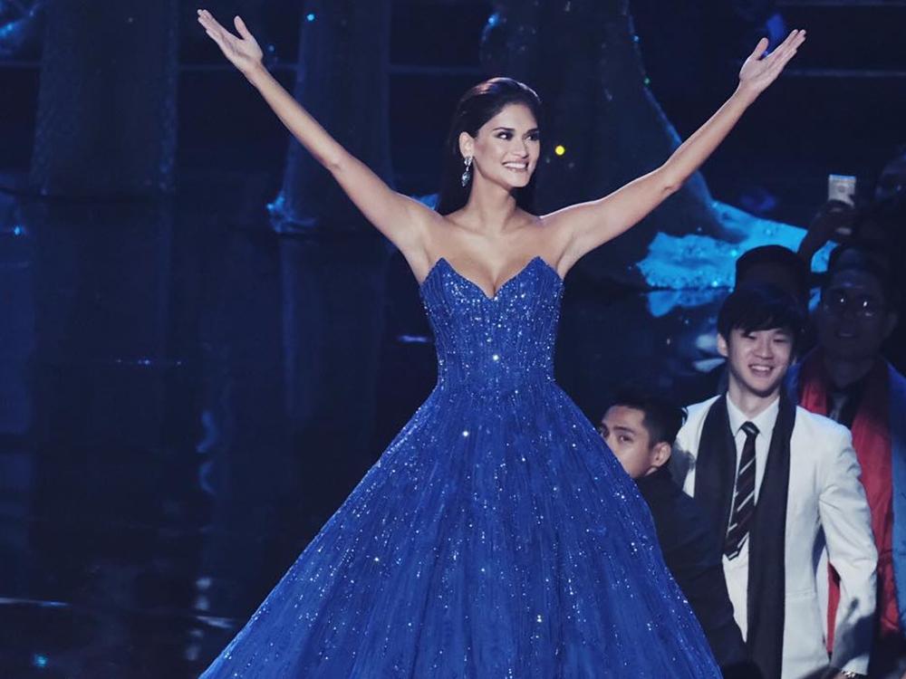 Wearing a sparkling blue ball gown, Pia shined as she walked around the stage and waved before the crowd to give her thanks and bid goodbye to her reign.