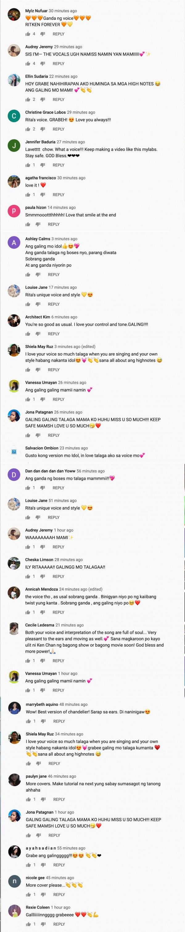 Rita's cover is the latest among her jaw-dropping performances compiled in her YouTube account.