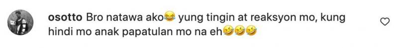 Highlight ng comment section ang kwelang biro ni Oyo, "Bro natawa ako yung tingin at reaksyon mo, kung hindi mo anak papatulan mo na eh," saad ng aktor.
