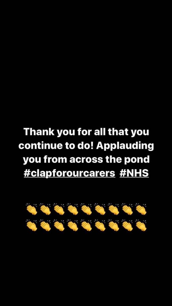 The Duke and Duchess of Sussex, Prince Harry and Meghan Markle, posted a message on their Instagram story, writing: “Thank you for all that you continue to do! Applauding you from across the pond!”