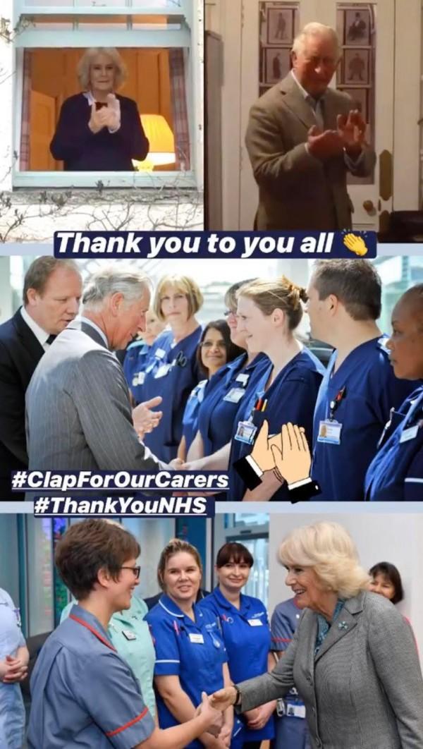He and his wife Camilla, Duchess of Cornwall, joined in on the campaign by posting an Instagram Story of them clapping from two different rooms, as Prince Charles remains in isolation.