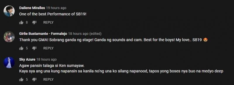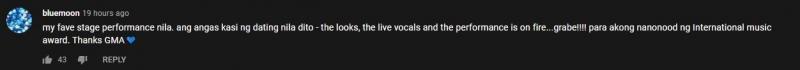 One comment read, "My fave stage performance nila. Ang angas kasi ng dating nila dito -- the looks, the live vocals, and the performance is on fire...grabe!"