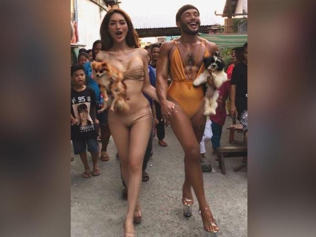 Ngayon naman, imbes na naka-gown ay naka-swimsuit ang dalawa at ginawang catwalk ang loob ng palengke.