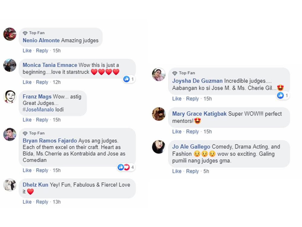 Umani ng papuri mula sa netizens ang pagpili ng programa kina Heart Evangelista, Cherie Gil at Jose Manalo bilang powerhouse council na siyang huhubog sa mga talento ng StarStruck hopefuls.