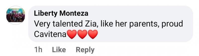 “Very talented Zia, like her parents, proud Cavitena (heart emoji),” said Liberty Monteza.