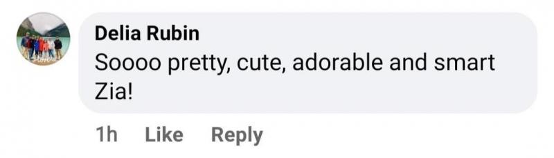 Another fan named Delia Rubin praised Zia for her beauty and intelligence and wrote, “Soooo pretty, cute, adorable and smart Zia!”