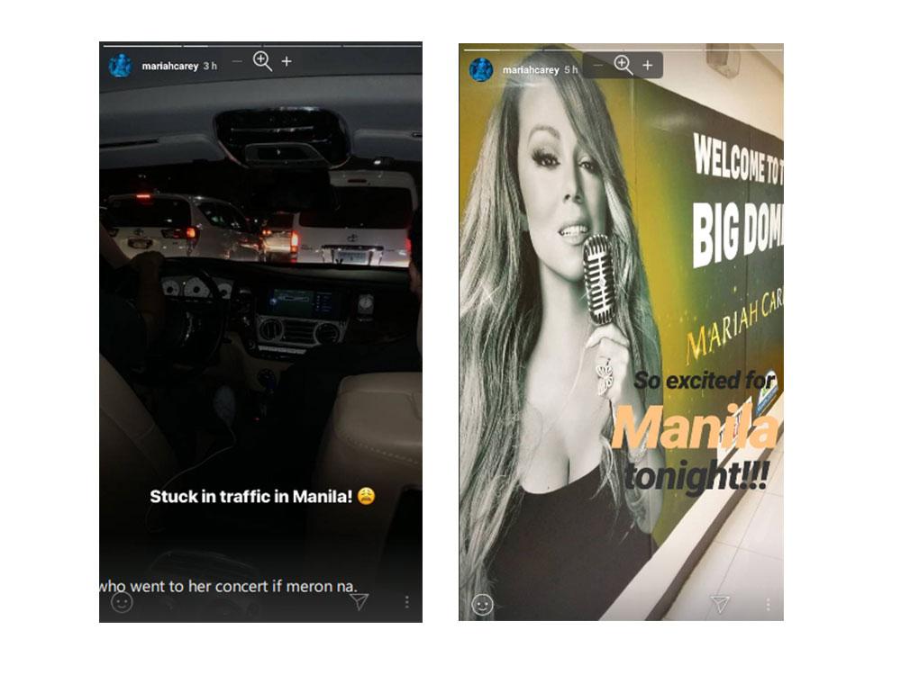 Welcome to Manila (traffic), Mariah! The international songstress shares on Instagram her experience being stuck in heavy Manila traffic.