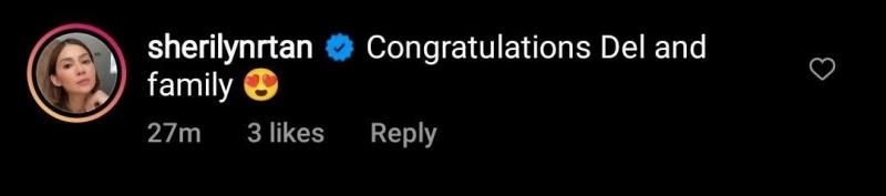 In the comments section, Kapuso actress Sherilyn Tan-Reyes congratulated the married couple for their new blessing.