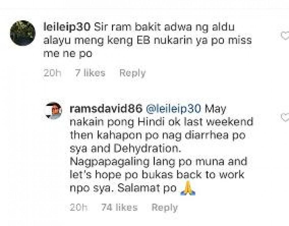 Ayon sa Triple AAA president na si Mr. Rams David na nagma-manage sa showbiz career ni Maine, kasulukuyan nagpapahinga ang kanyang alaga matapos tamaan ng diarrhea at dehydration.