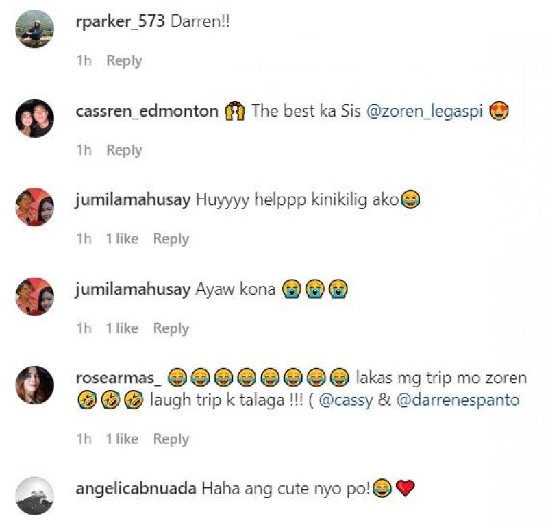 “😂😂😂😂😂😂😂😂 lakas ng trip mo zoren 🤣🤣🤣 laugh trip ka talaga!!! @cassy & @darrenespanto” @rosearmas_ reacted.
