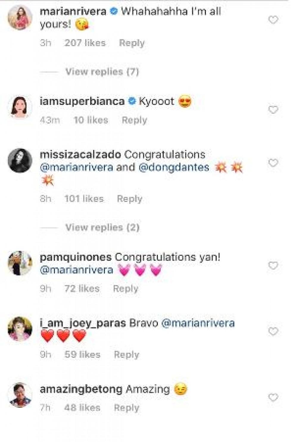 Celebrities reacted to this post of the Kapuso Primetime King saying that he is such a “sweet” husband to Marian Rivera.