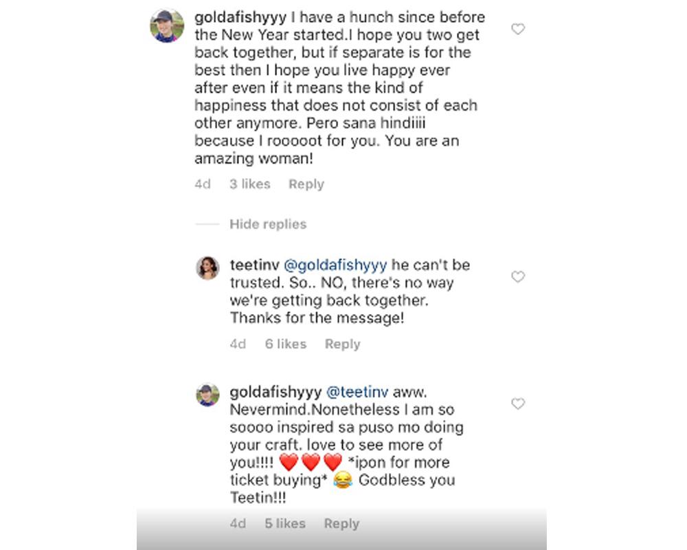 Teetin and JC are on their fourth year as a couple, but her IG post last January 8 seems to hint at the real status of their relationship.