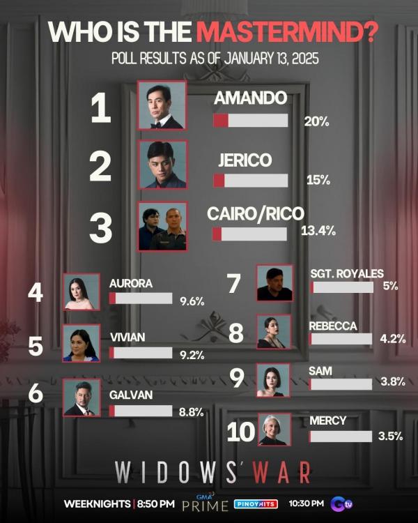 Sa bagong poll na inilabas ng GMA Network sa social media, muling hinulaan ng viewers kung sino ang mastermind ng mga patayan sa Widows' War.