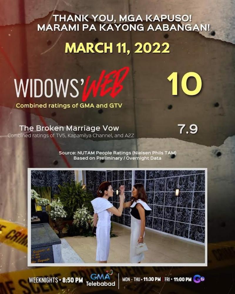 Patuloy na subaybayan ang Widows' Web tuwing Lunes hanggang Biyernes, 8:50 p.m. sa GMA Telebabad pagkatapos ng First Lady.