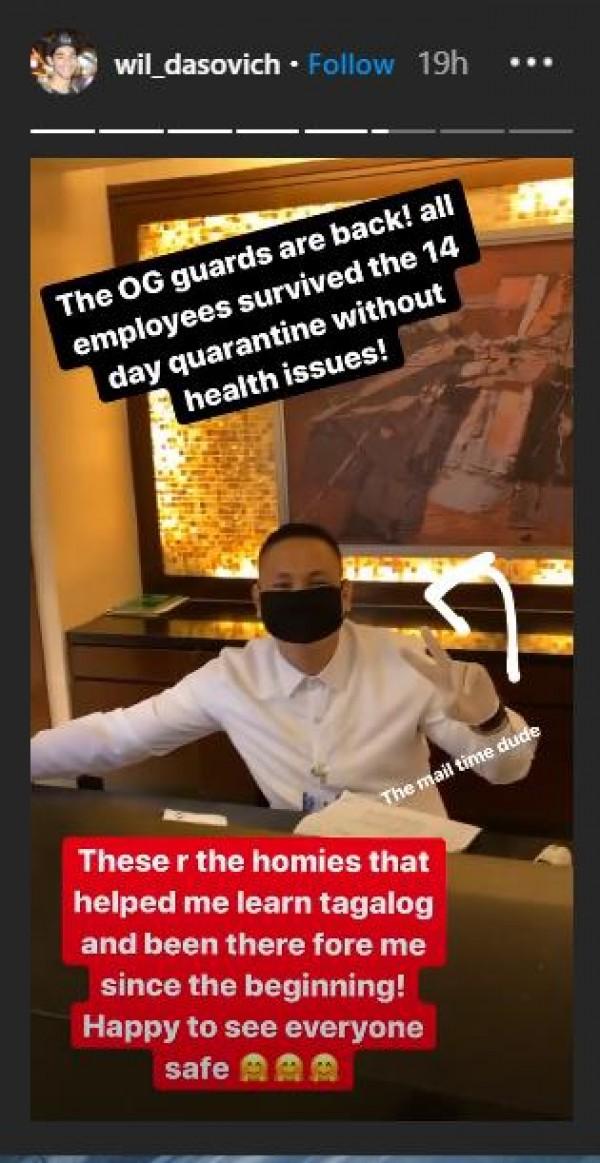 Vlogger Wil Dasovich breathed a sigh of relief after learning that the security guards of Joya North Tower, the condominium where he lives, have returned to work after being quarantined for 14 days.