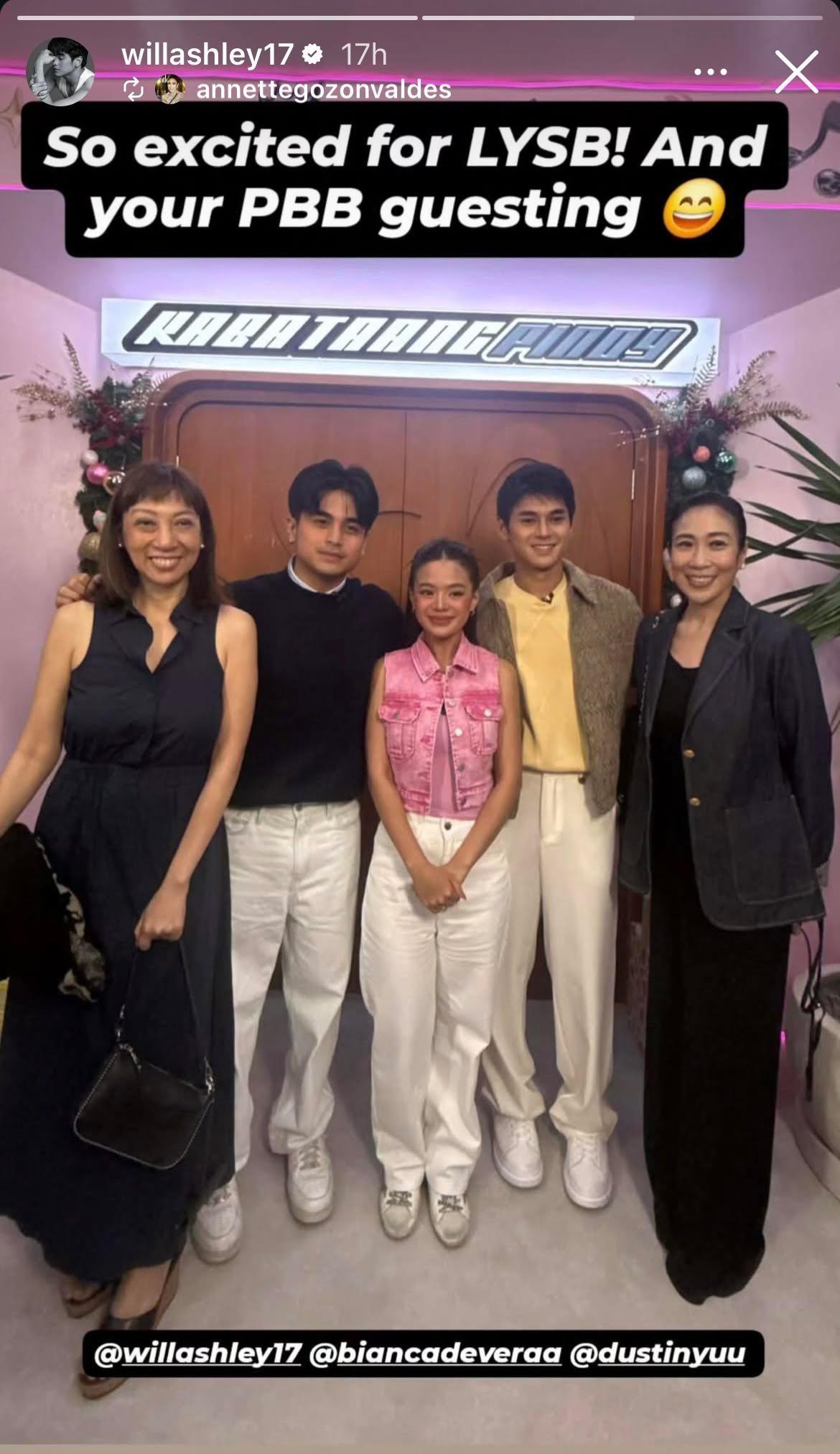Sa Instagram Stories, may pahapyaw si GMA Network Senior Vice President Atty. Annette Gozon-Valdes tungkol sa pagbisita ng Love You So Bad stars na sina Will Ashley, Bianca De Vera, at Dustin Yu sa Bahay Ni Kuya.
