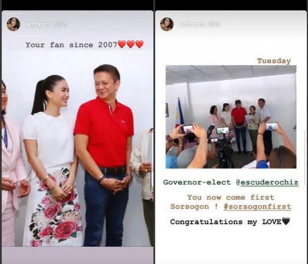 Heart Evangelista commends husband Chiz Escudero after proclamation as governor of Sorsogon
