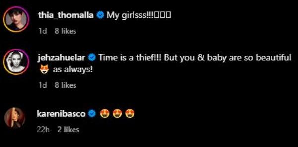 Beauty queens Thia Thomalla, Jehza Huelar, and Karen Ibasco dropped compliments with emojis to express their love for the adorable mother-daughter duo.