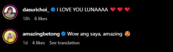 Winwyn's noontime co-hosts Dasuri Choi and Betong Sumaya also joined the fun as they showered comments in the post saying "I Love You Luna" and " Wow ang saya, amazing."