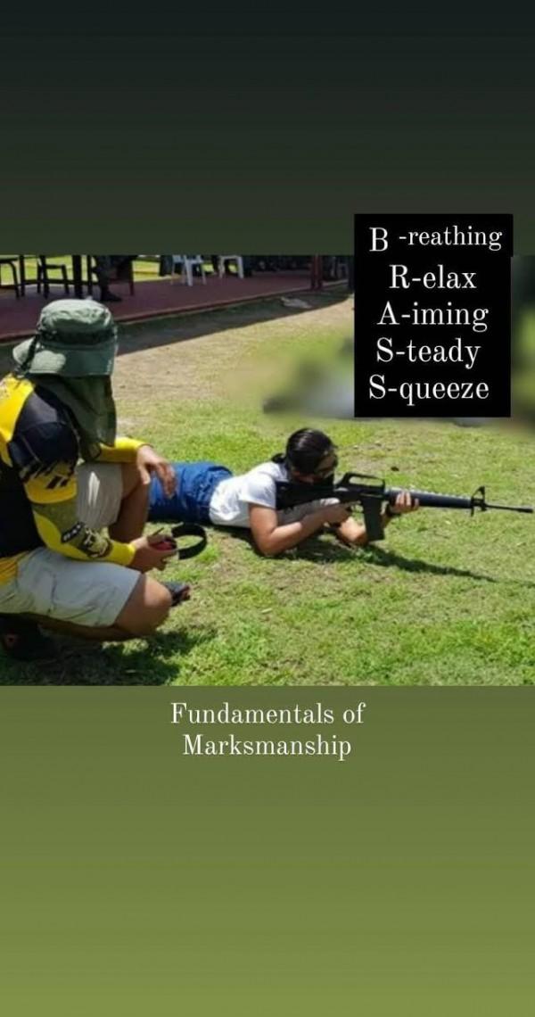 She wrote in the caption, “Breathing. Relax. Aiming. Steady. Squeeze. The Fundamentals of Marksmanship.”