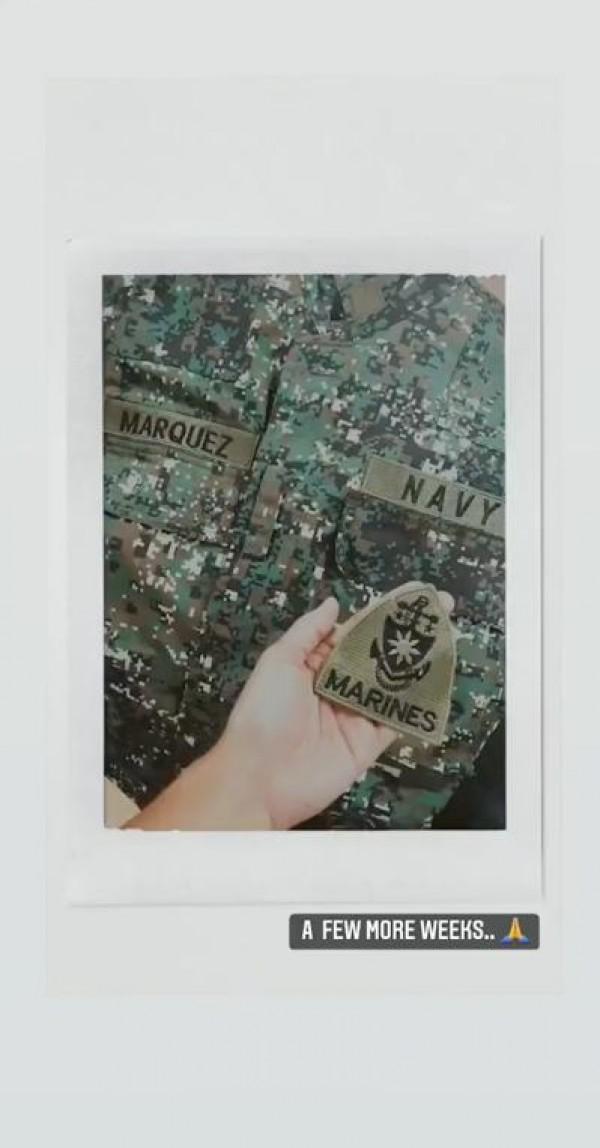 “A few more weeks,” she wrote in the caption while holding a badge that says, “marines.”