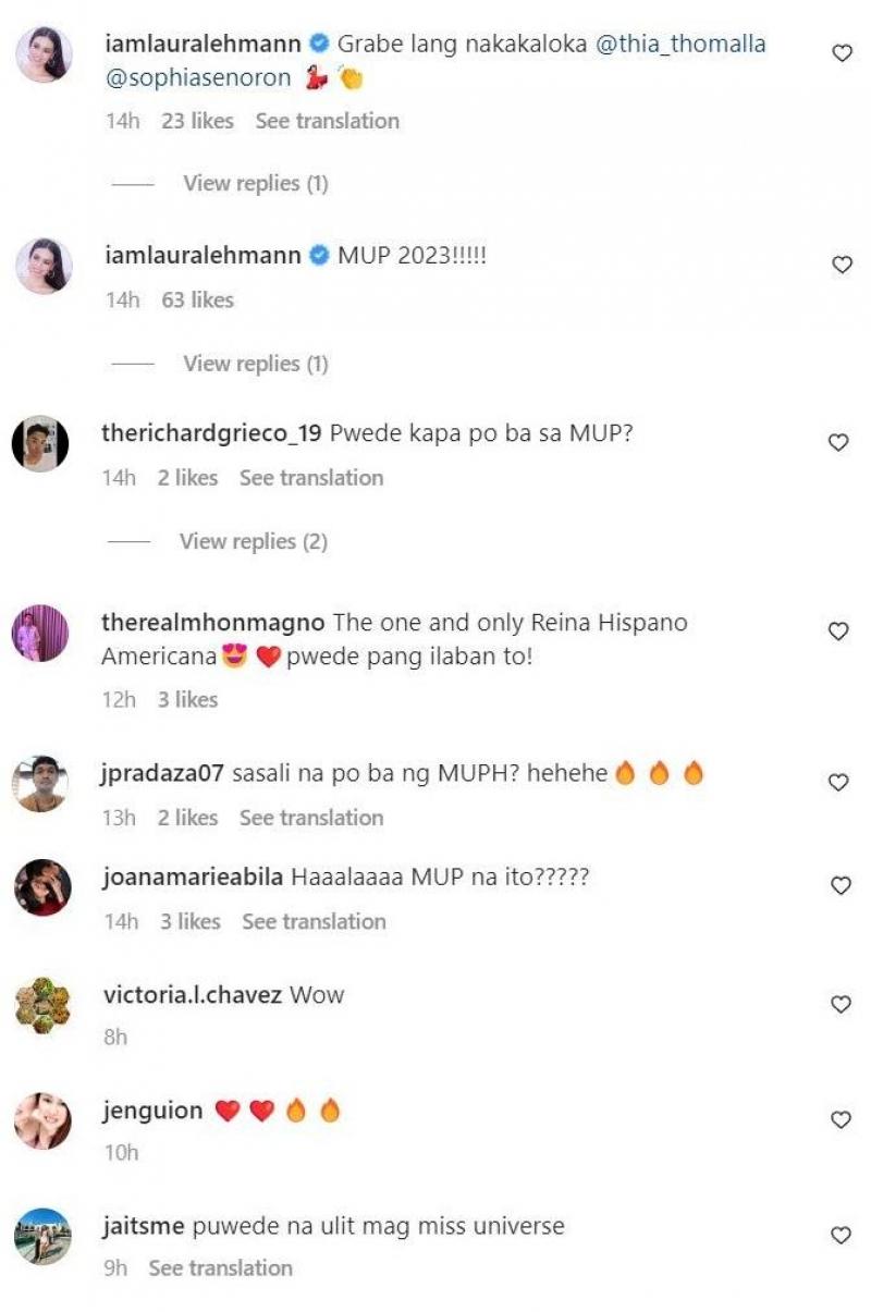 Fellow beauty queens Maxine Medina and Megan Young were raving about the stunning photo, while former Miss World Philippines Laura Lehmann-Pessumal suggested that she could still compete in the Miss Universe Philippines pageant this year.