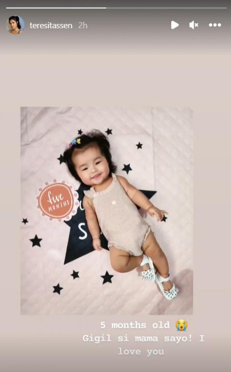 On her Instagram story, Winwyn shared another photo of baby Luna. She captioned it with, "5 months old! [crying emoji] gigil si mama sa'yo! I love you!"