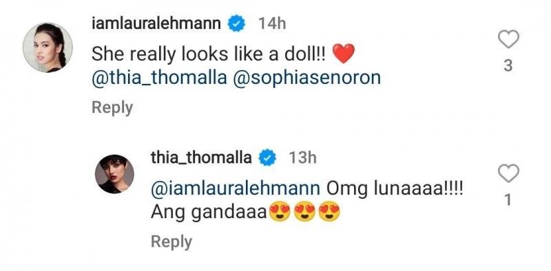 Miss World Philippines 2017 Laura Lehmann left a comment saying, “She really looks like a doll!!” and tagged beauty queens-Sparkle stars Thia Thomalla and Sophia Senoron.