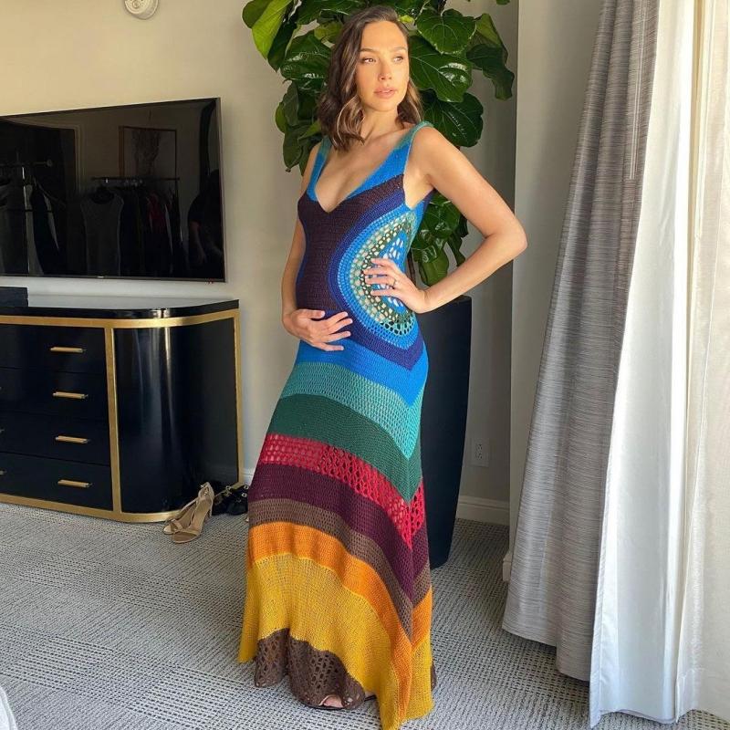 In a recent Instagram post, Gal expressed her gratitude for her 2021 Vision Award from the Sun Valley film festival. Gal also included a photo of her wearing a colorful, knitted maternity dress.