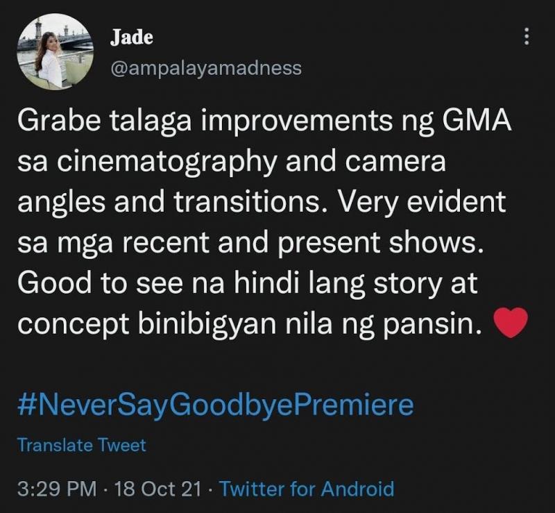 Mayroon ding pumuri sa angking galing ng Kapuso Network pagdating sa paggawa ng isang show dahil hindi lamang daw istorya ang nabigyan pansin kundi pati ang cinematography at iba pang technical na aspeto.