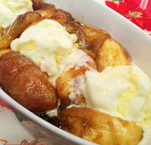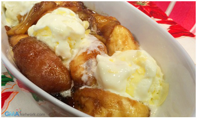 Combine brown sugar and water in a pan and bring to boil until sugar dissolves. Add the sliced bananas and langka, turn the heat on low