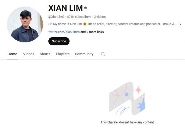 Sa ngayon, ang natitira na lamang na video sa YouTube channel ni Xian ay ang video na pinamagatang “Draw My Life- Xian Lim | 053” na kaniyang in-upload noong 2016 at dalawang YouTube reels na naglalaman ng kaniyang motorcycle vlog, at pagiging speaker sa isang event.