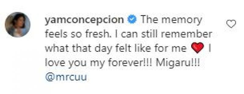 Yam replied, “The memory feels so fresh. I can still remember what that day felt like for me. I love you, my forever!!! Migaru @mrcuu.”