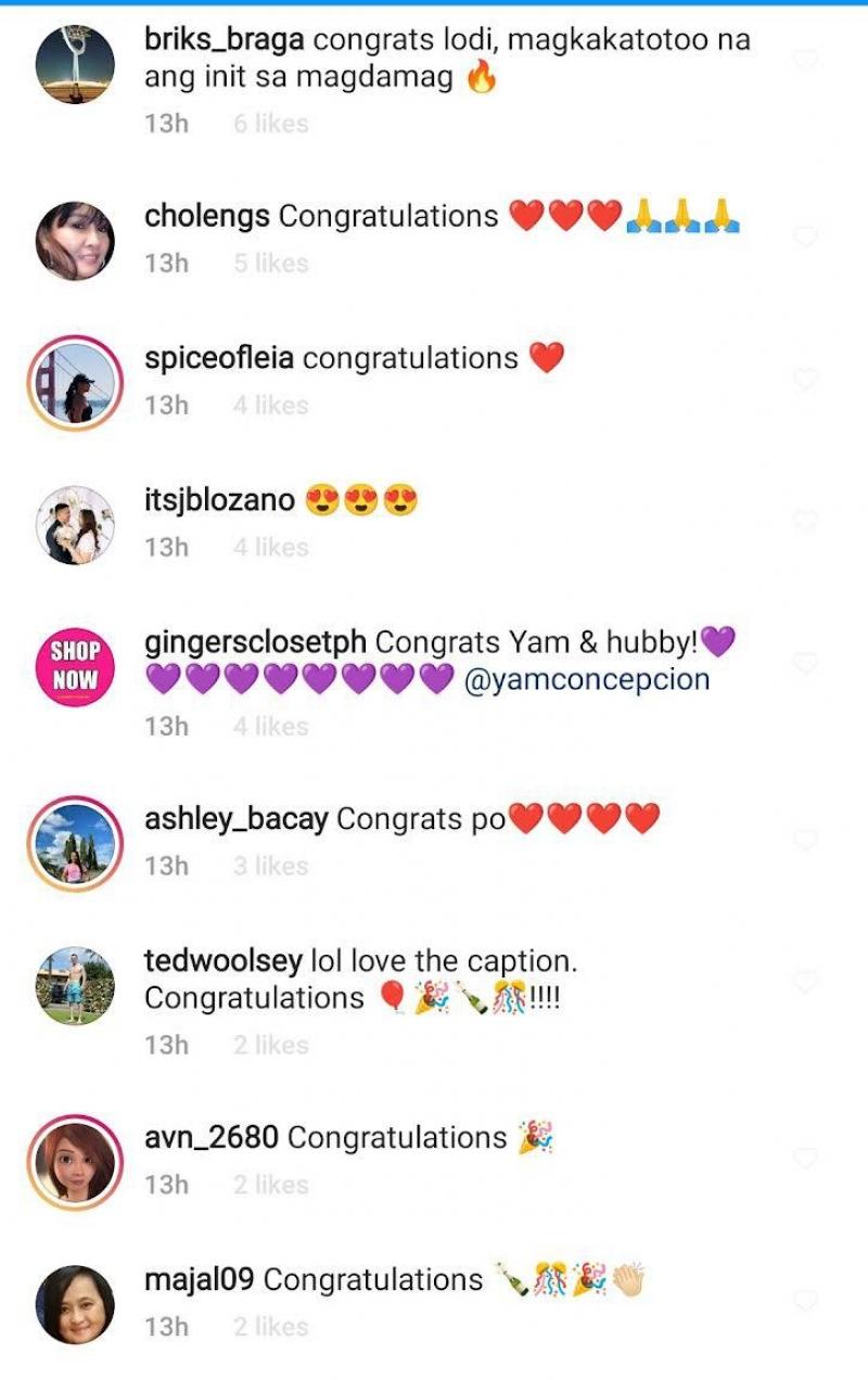 In the comments section, netizens also congratulated Yam and Miguel for their new milestone as husband and wife.