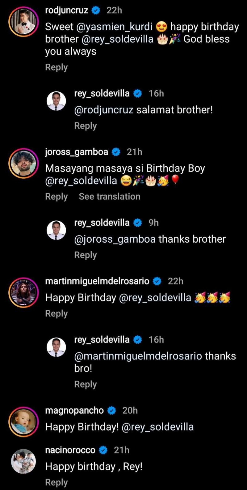 Aside from Yasmien, Rey also received warm birthday greetings and messages from other celebrities like Joross Gamboa, Rodjun Cruz, Pancho Magno, Martin Del Rosario, and Rocco Nacino.
