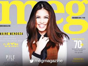 After Maine Mendoza a.k.a Yaya Dub graced the covers of Yes! Magazine and Reader’s Digest Asia, the Eat Bulaga! star is featured yet again on the cover of Meg magazine's November issue.