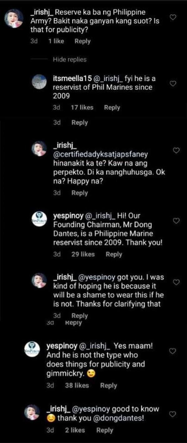 Sa comment section ng Instagram post ni Dingdong, isang netizen ang nagtanong kung bakit nakasuot ng military uniform ang aktor.