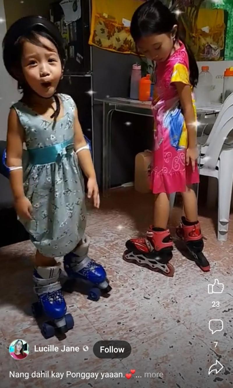 Nagsasanay naman sa roller blades at roller skates ang magkapatid na Annastazia at Cassandra bago sumubok sa ice rink, na ani ng kanilang ina ay "dahil kay Ponggay 'yan."
