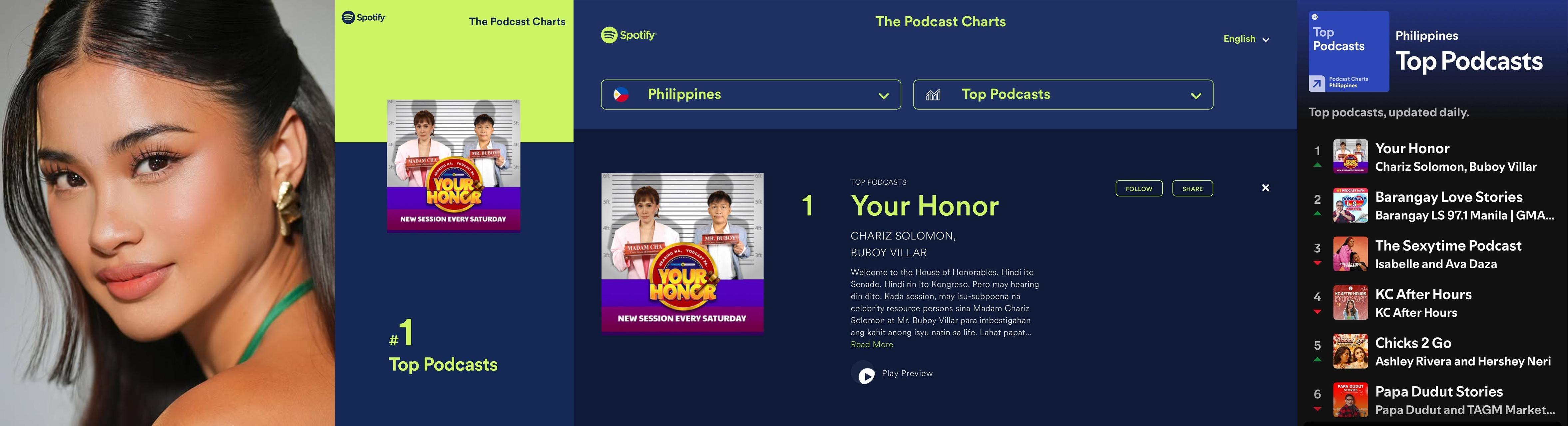 Your Honor hosted by Chariz Solomon and Buboy Villar accomplished a phenomenal feat this month of July claiming the top rankings on Spotify Philippines.