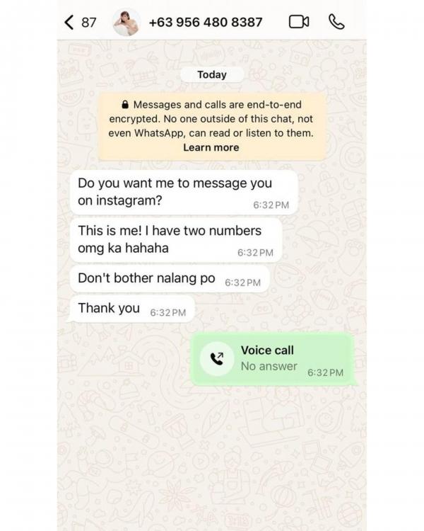 "If anyone receives messages like these, kindly report the number and let me know right away. Thank you for your help and caution," she added.