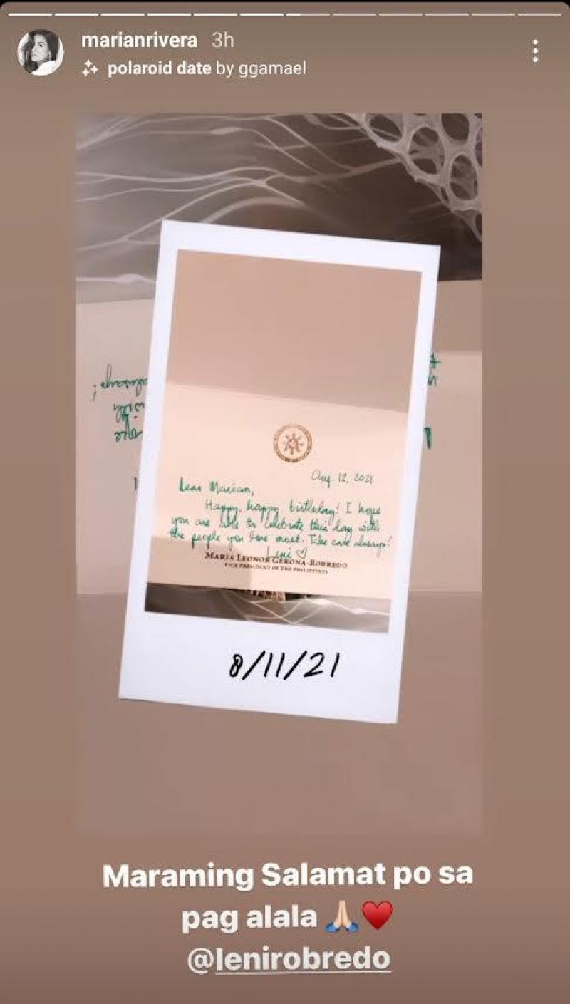 On her Instagram stories, the Kapuso actress received a beautiful bouquet of flowers and a special birthday note from Vice President Leni Robredo.