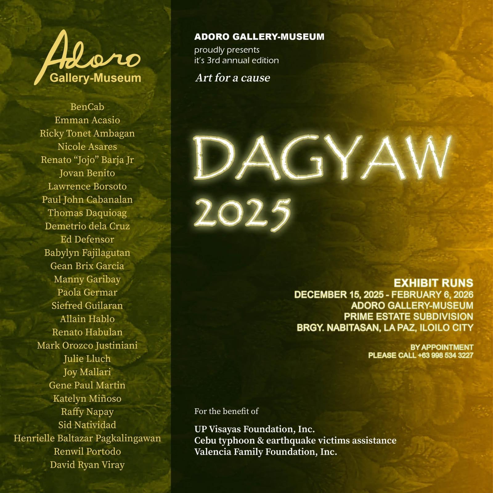 ADÔRO Gallery-Museum proudly unveils Dagyaw 2025, its third annual Art for a Cause exhibition, running from December 15, 2025 to February 6, 2026 at Prime Estate Subdivision, La Paz, Iloilo City. Inspired by the Hiligaynon term dagyaw—a call to work together for the common good—the exhibit unites master artists, respected cultural figures, and rising talents in Philippine art. Read more