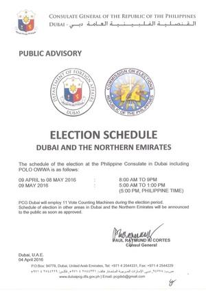 ANNOUNCEMENT: Election schedule for overseas Filipino voters in Dubai and the Northern Emirates