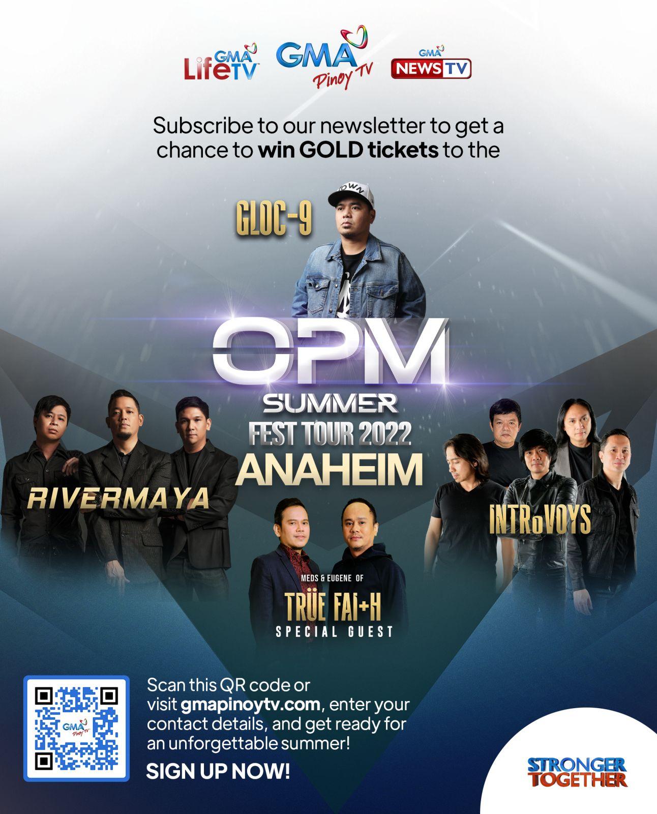Kapuso abroad, get the chance to win GOLD tickets to the OPM Summer Fest Tour 2022 featuring Filipino artists Gloc-9, Rivermaya, Introvoys, and True Faith. Jam and listen to their timeless hits and classics at the National Grove of Anaheim this July 16. Read more