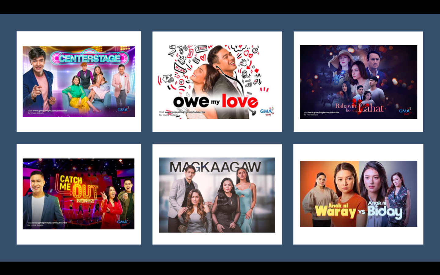 As GMA Network’s flagship international channel, GMA Pinoy TV delivers exceptional Filipino entertainment and news programming since its inception in 2005. GMA Life TV, on the other hand, was launched in 2008 and delivers a diverse range of program genres that include lifestyle, travel, food, health and beauty, talk and infotainment, blockbuster movies, and top-rated English-dubbed drama series, all available in English and Filipino. Backed by the most trusted and multi-awarded Philippine news and public affairs teams, GMA News TV has been providing global Filipinos with the latest, most comprehensive, and most credible news from the Philippines since 2011. GMA On Demand is the go-to source for the most premium content from GMA with its unparalleled selection of catch-up, subscription, and transactional VOD content.