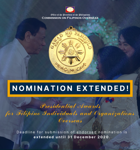 CFO EXTENDS PRESIDENTIAL AWARDS NOMINATION PERIOD UNTIL 31 DECEMBER 2020