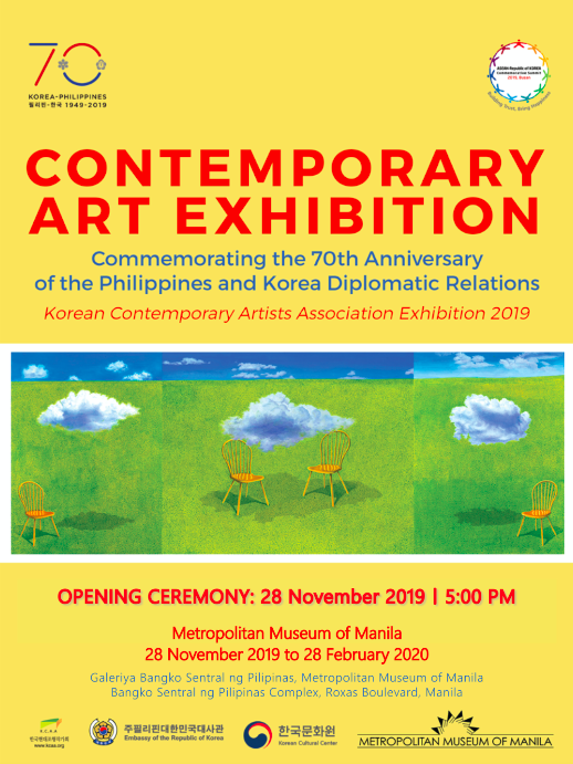 The Embassy of Republic of Korea and the Korean Cultural Center in the Philippines are collaborating with Korean Contemporary Artists Association for the exhibit titled "Korean Contemporary Artists Association Exhibition 2019" at the Metropolitan Museum of Manila. Read more