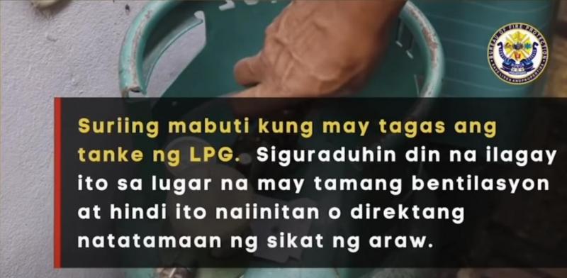 "If ever nga ganoon, nagli-leak na, sumisirit na 'yung tangke, huwag matakot. I-approach 'yung nozzle niya or 'yung valve niya and then isara lang," bahagi ni SInsp. Solano.
